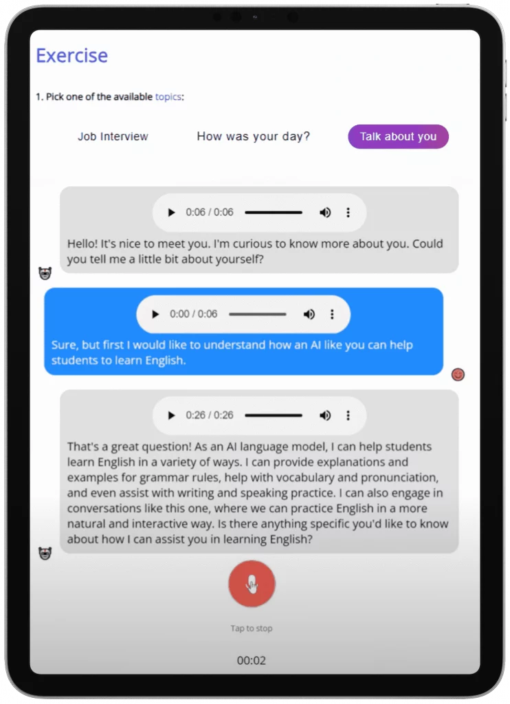 With interactive and real time speaking exercises. Get instant feedback on your answers.